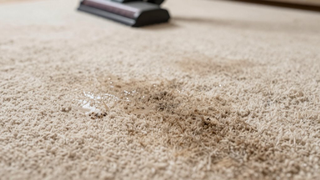 Selecting the right cleaning agents is crucial for effectively stopping carpet wicking. You want products that penetrate deep without leaving residues that cause future stains. When working with natural fiber carpets, choose cleaners designed for delicate fibers to preserve stain resistance. Here are four tips: