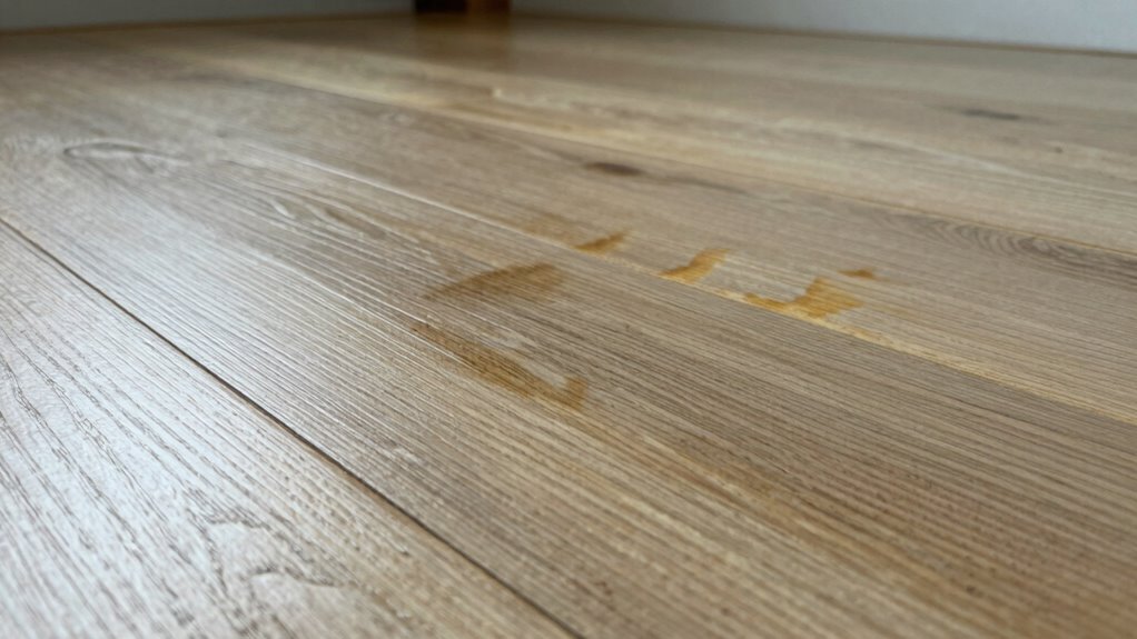 Water spills or leaks on laminate flooring require immediate action to prevent lasting damage. Your first step is to act quickly with a thorough cleanup to minimize water absorption. Use emergency measures like blotting the spill with towels or a mop to absorb excess moisture. Avoid spreading the water further or using heat, which can warp the flooring. Remember, prompt removal is essential to prevent warping, swelling, or mold growth. Additionally, understanding proper maintenance can help prevent future issues with water damage. Consider these steps: – Blot up as much water as possible with dry towels – Use a wet/dry vacuum if available – Elevate furniture to prevent further damage – Turn on fans or dehumidifiers to speed drying – Check for hidden leaks and stop the source immediately Water-resistant materials can also provide added protection against future spills. Quick cleanup helps preserve your laminate‘s integrity.