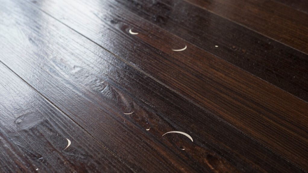 Think of polished floors like glass and matte floors like velvet. Heel marks on polished surfaces are more noticeable and can dull their shine, while on matte floors, they blend in more easily. The surface shine effects make a big difference—you’ll see heel marks stand out on polished floors but appear subtler on matte ones. So, your choice of finish influences how visible those marks will be and how easy they are to remove.