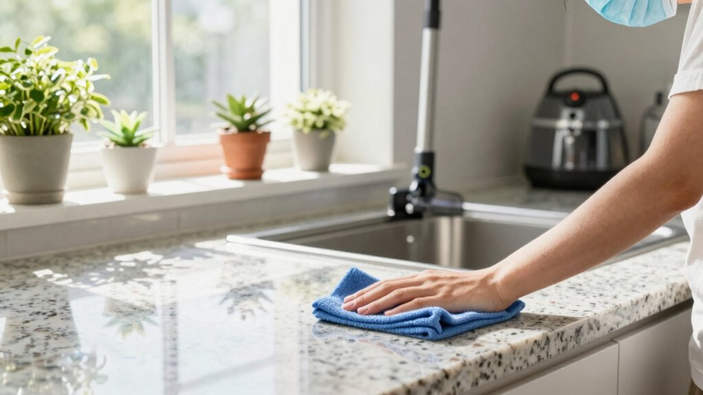 Think of your cleaning schedule as a shield protecting you from asthma triggers. You should aim for routine cleaning every 2 to 3 days, focusing on dust-prone areas. Incorporate a consistent cleaning frequency, like vacuuming with a HEPA filter and dusting with damp cloths, to keep allergens at bay. Staying on top of your routine helps reduce dust and keeps your air safer and healthier every day.