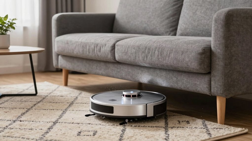 These measures help your robot avoid getting trapped under furniture and improve overall cleaning efficiency. By combining physical barriers with well-positioned sensors, you give your vacuum clearer cues to stay on track and avoid sticking issues.