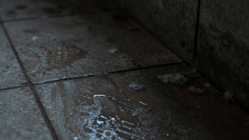 Even after you finish mopping, some areas can still trap dampness, especially in hidden corners and along edges. These spots often escape regular cleaning, allowing moisture to linger. Hidden corners behind cabinets or appliances and along baseboards are prime locations where moisture hides. Proper edge cleaning is essential to prevent mold growth and mildew smell. To guarantee these areas dry completely, pay close attention to: