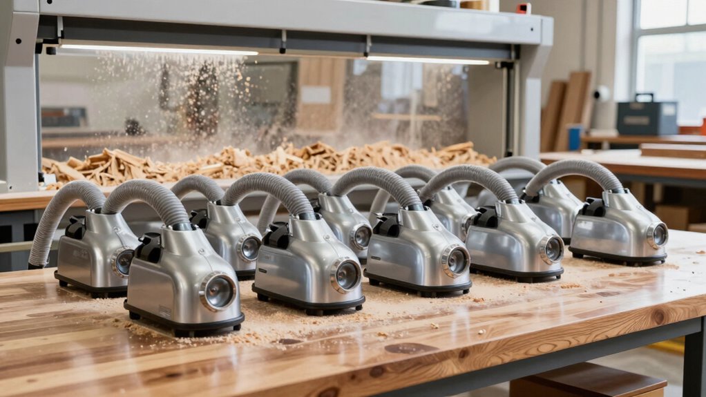 Choosing the right dust extractor isn’t just about power or size—it’s about creating a safer, cleaner workspace. While larger units handle bigger jobs, compact models offer portability and convenience. It’s like balancing a tightrope between efficiency and ease. Ultimately, the best vacuum for woodworking dust combines strong filtration with user-friendly features, proving that sometimes, the smallest details make the biggest difference in achieving a dust-free, safe environment.
