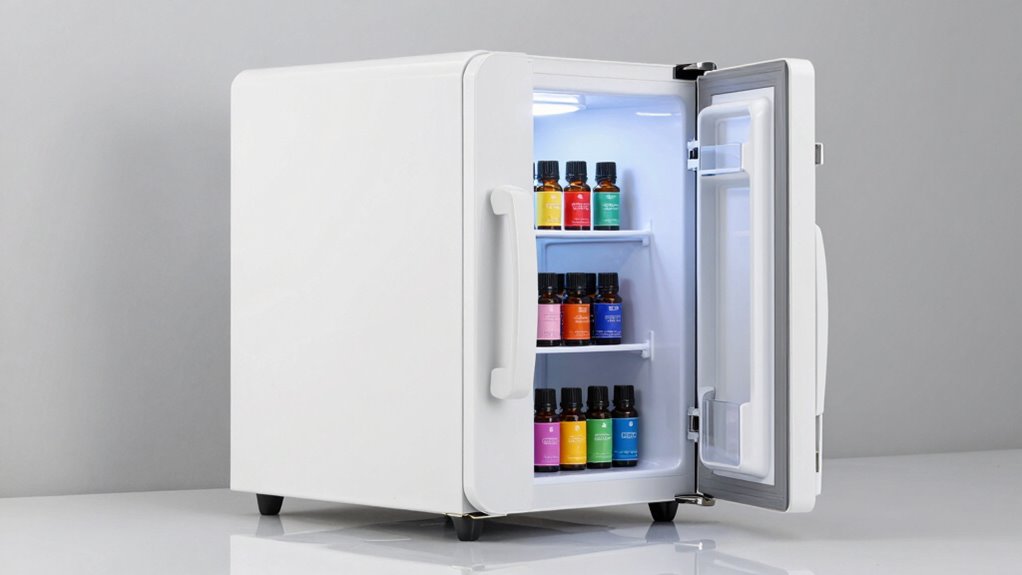 Choosing the right mini fridge for your essential oils is like finding a cozy nest for delicate treasures—each one deserves the perfect spot to stay fresh and vibrant. With options that suit every space and need, you can keep your oils safe, organized, and ready to nurture your well-being. Think of it as cultivating a tiny sanctuary where your precious scents can flourish, always within arm’s reach and perfectly preserved.