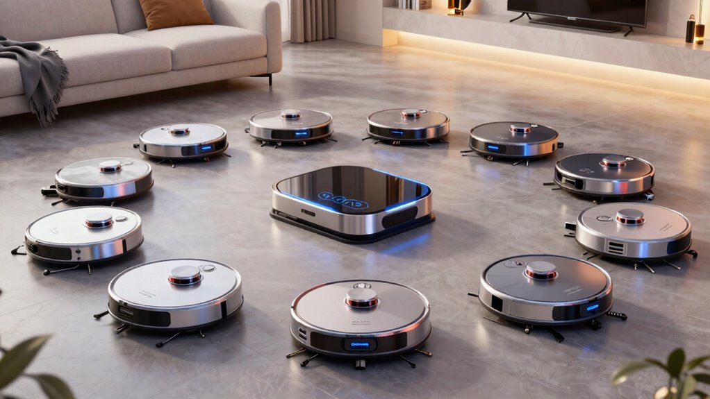Robot vacuums differentiate between floor types using sensors and advanced algorithms. I’ve noticed that when my robot detects a hard floor, it switches to a more vigorous cleaning mode, while on carpets, it adjusts suction automatically. Some models even use cameras or lidar to map your space and identify surfaces, ensuring they’re optimized for different materials. This smart detection helps my vacuum clean more efficiently without damaging delicate floors.