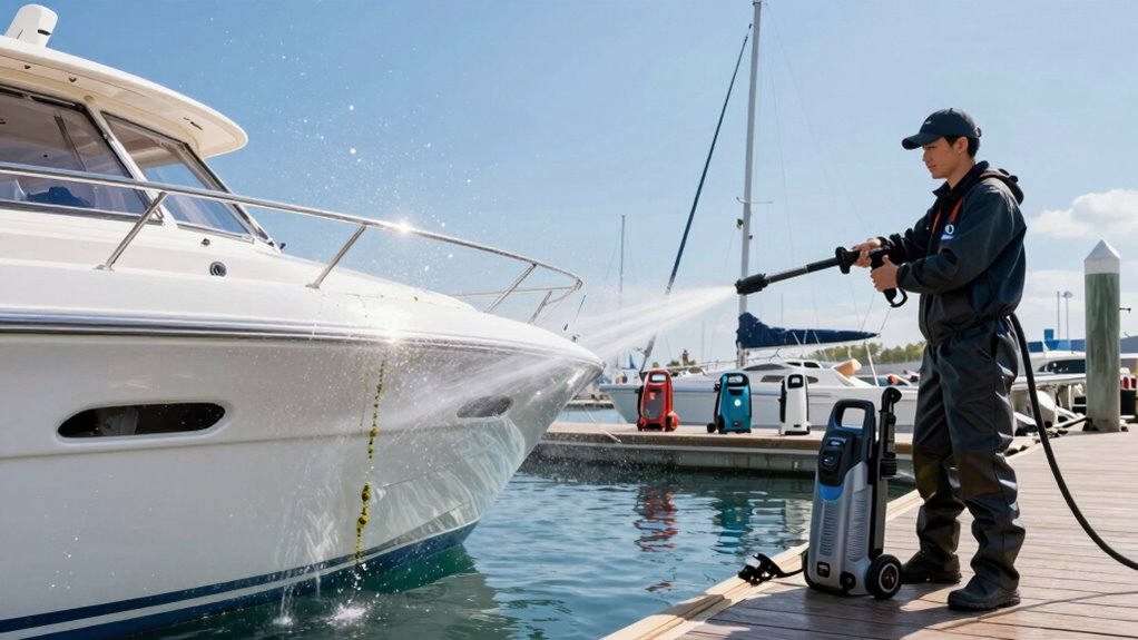 - Choose pressure washers with foam cannons and chemical support for effective marine and stubborn grime removal.