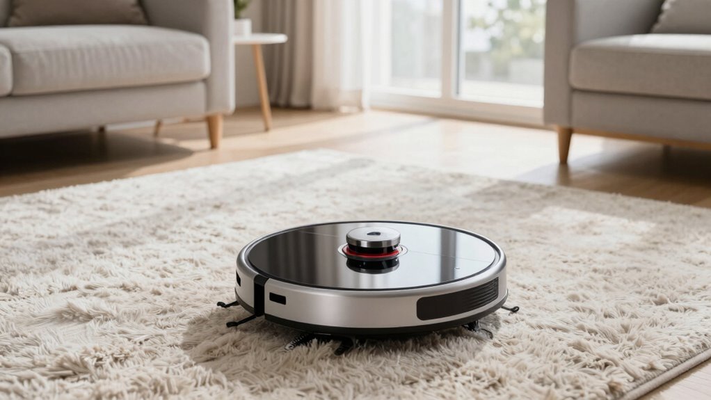 After exploring these top robot vacuums, I believe the right choice truly depends on your needs—whether it’s smart navigation or powerful suction. notably, studies suggest robot vacuums perform better on low pile rugs because their brushes don’t get clogged as easily. So, don’t just pick based on features; consider how your rug type interacts with the vacuum’s design. Ultimately, finding the perfect match can make cleaning effortless and even a little fun.