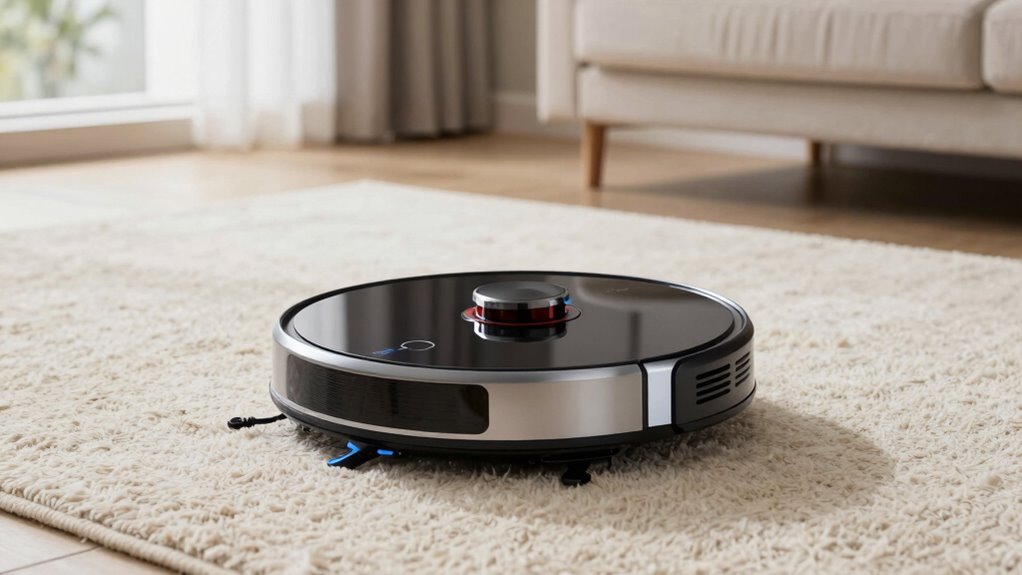 I suggest inspecting and cleaning the sensors every one to two weeks. Dust, hair, and debris can accumulate and hinder their functionality. I gently wipe the sensors with a soft, lint-free cloth and a bit of rubbing alcohol if needed. Regular maintenance guarantees your robot vacuum’s sensors remain precise and responsive, assisting it in navigating safely around pets, children, and obstacles for ideal cleaning outcomes.