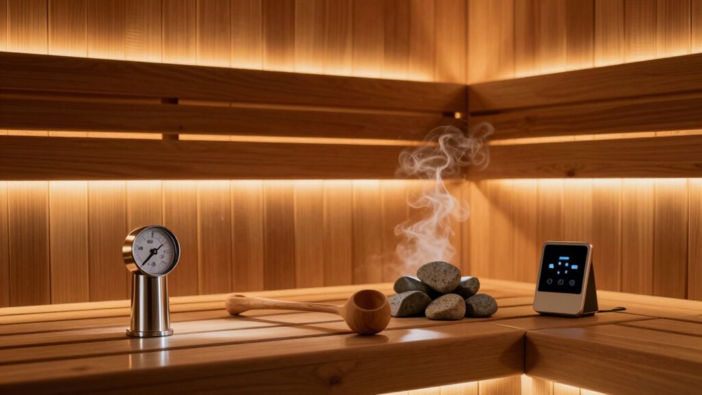 I check my sauna accessories regularly to keep everything in top shape. I clean aroma stones and crystals gently with a soft brush or cloth to remove dust and residue. I also inspect them for cracks or damage, replacing them as needed. For heater accessories like stones and stones holders, I verify they’re secure and free from buildup. Regular maintenance keeps my sauna safe, efficient, and enjoyable.